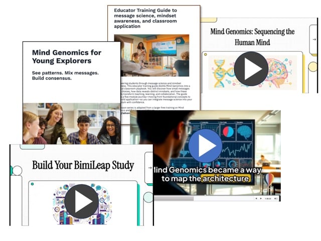 The Mind Genomics Professional Certification Path gives learners a complete, end-to-end foundation in the science of how people make choices. The path includes three courses that build on each other: Introduction to Mind Genomics, BimiLeap Applied Practice, and Mind Genomics Advanced Learning. Together they offer practical skills in designing studies, interpreting results, understanding mindsets, and applying insights to real decisions. When all three courses are completed, learners earn a Mind Genomics Professional Certification, demonstrating a working ability to run studies, generate valid insights, and apply the method in business, education, research, or community settings.
